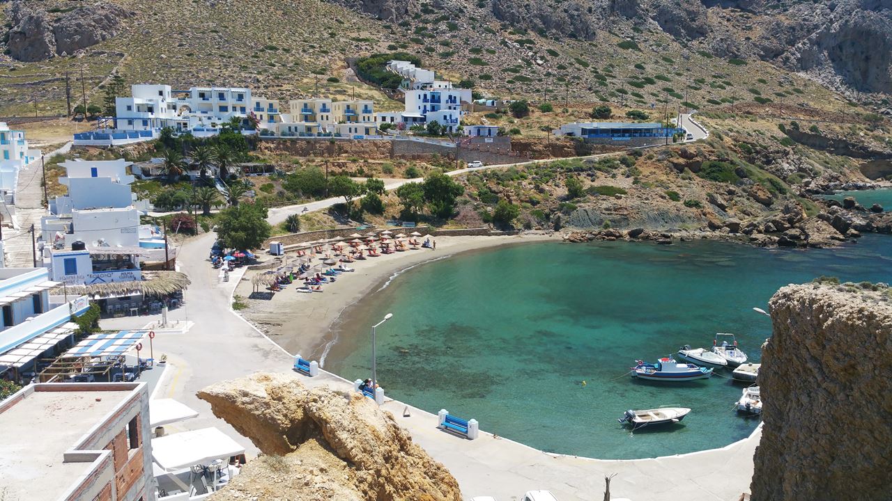 Finiki, famous for its fish taverns and its history throughout the Second World War period, is located on the southeast coast of the island 1 km north of Arkasa and 17 km southwest of Pigadia.